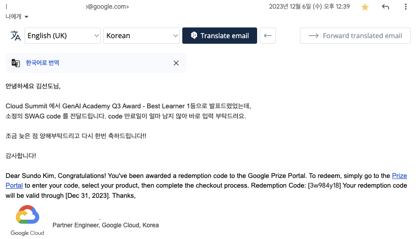- Google Cloud Gen AI Academy 3분기 최우수 학습자